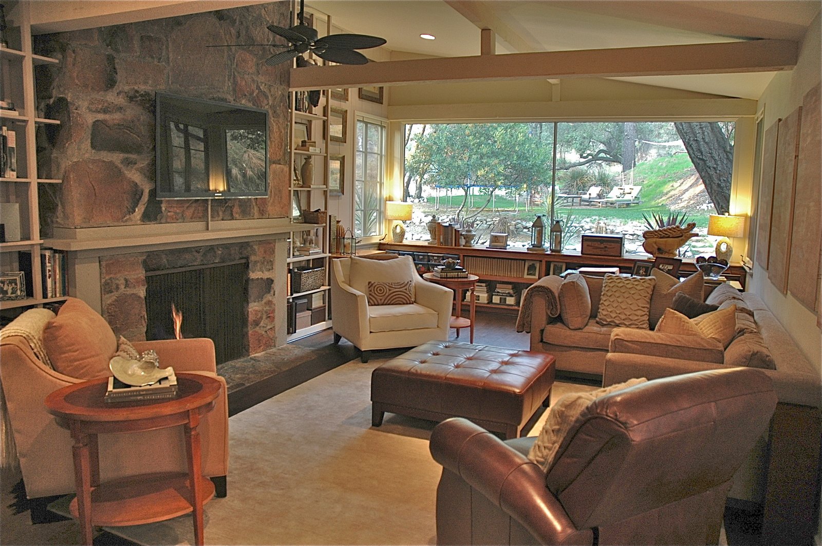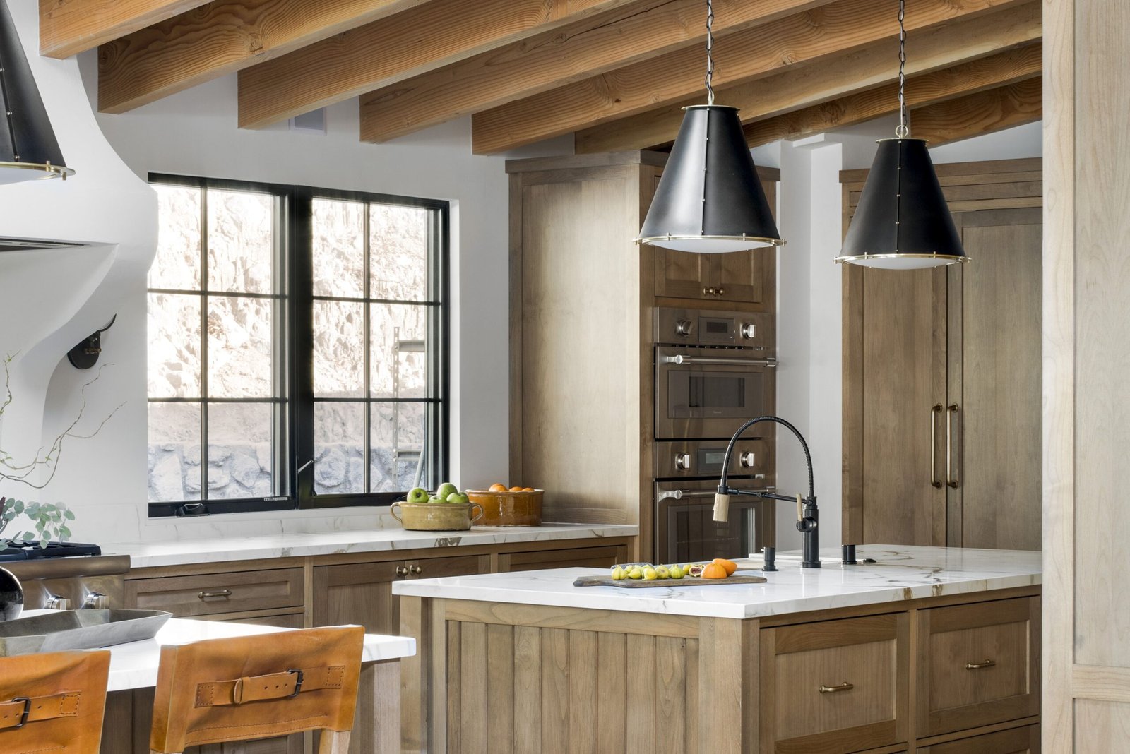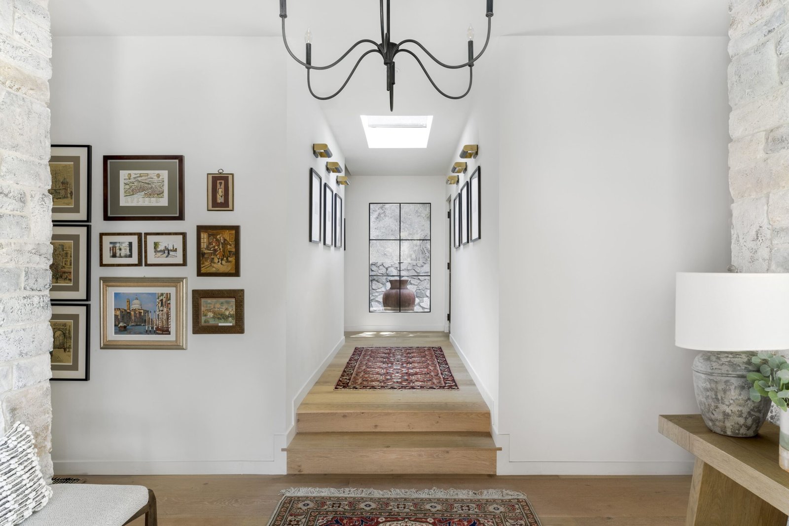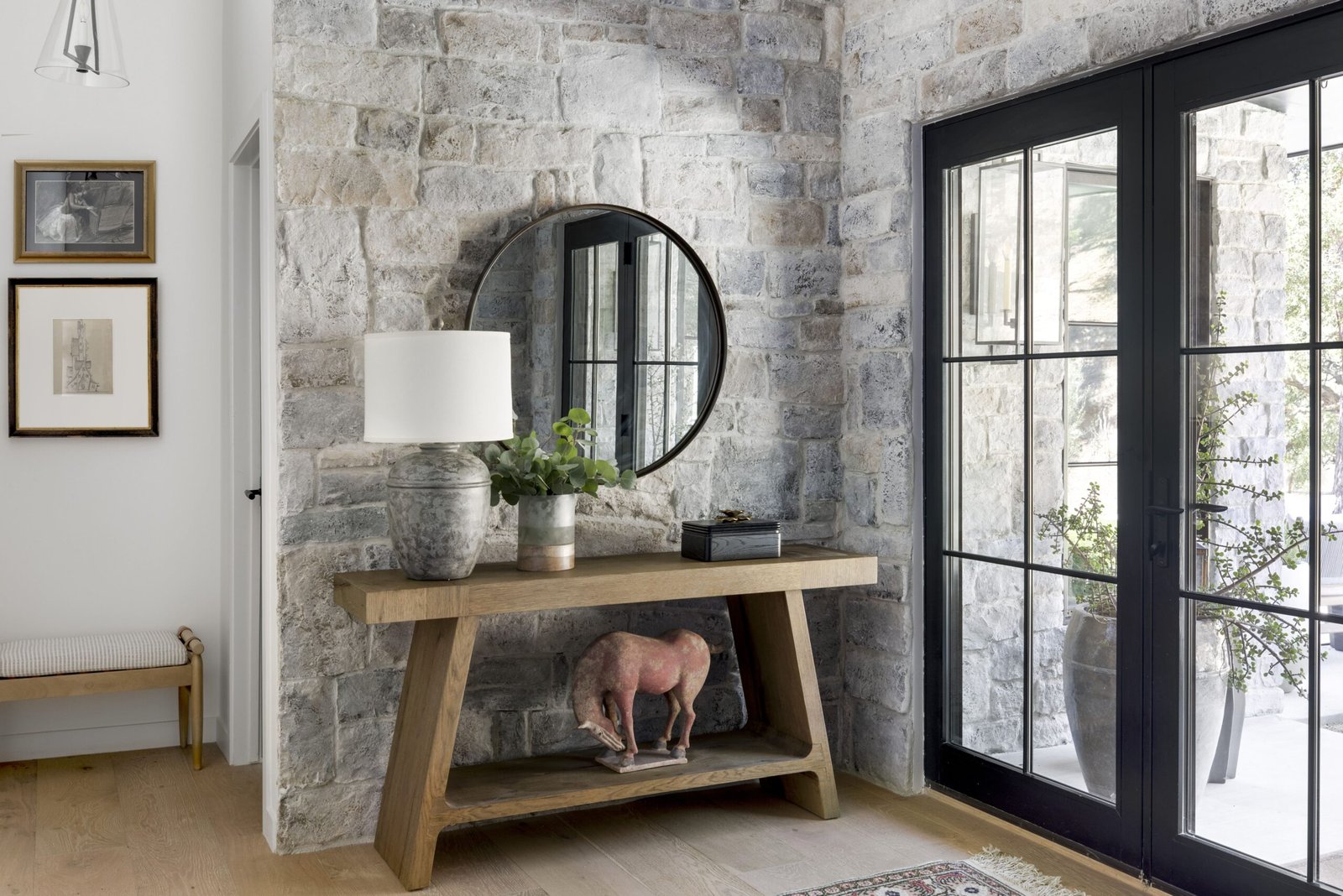 I selected materials to ground the home in its setting. Stone from the exterior carries into the entry, echoing the hillside beyond. Warm woods, layered textures, and an earthy palette create a sense of ease rather than polish.
