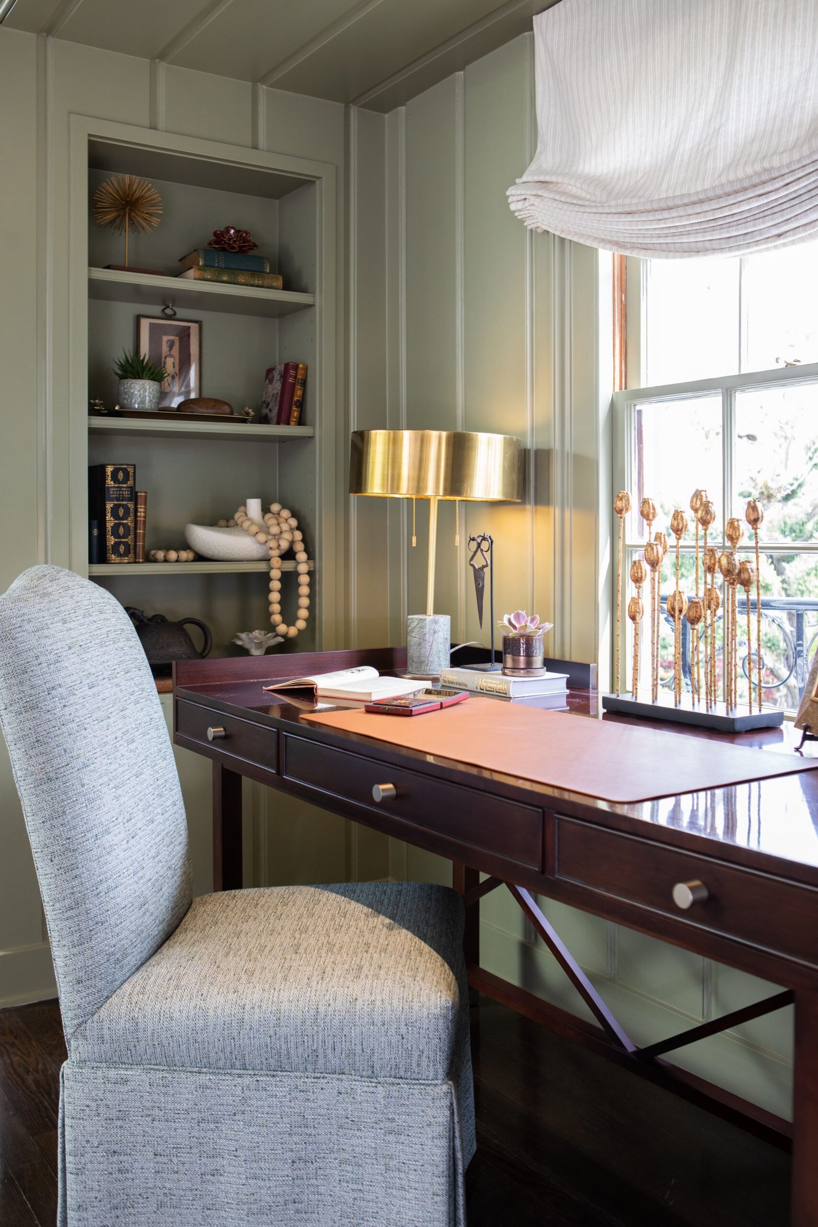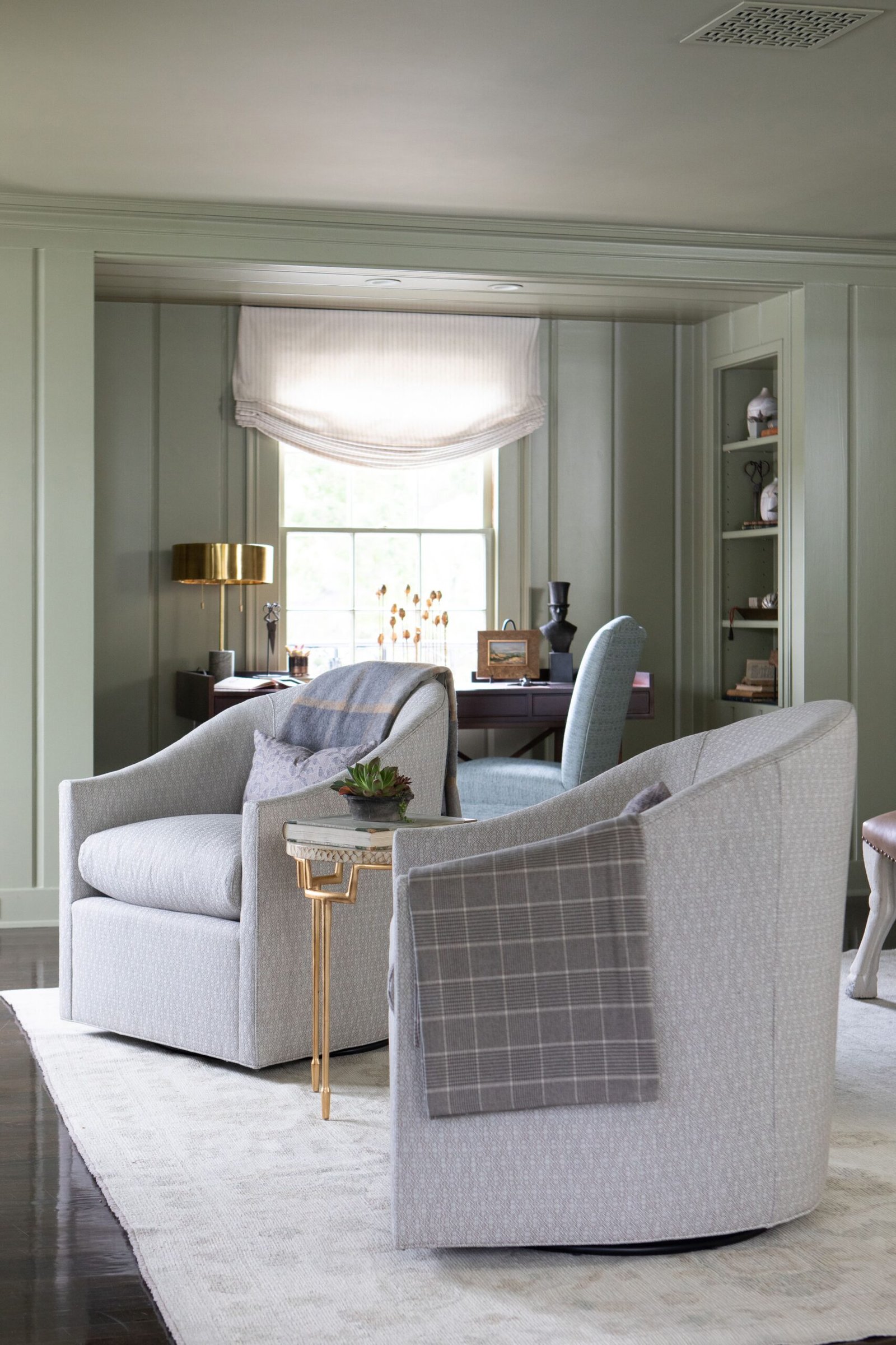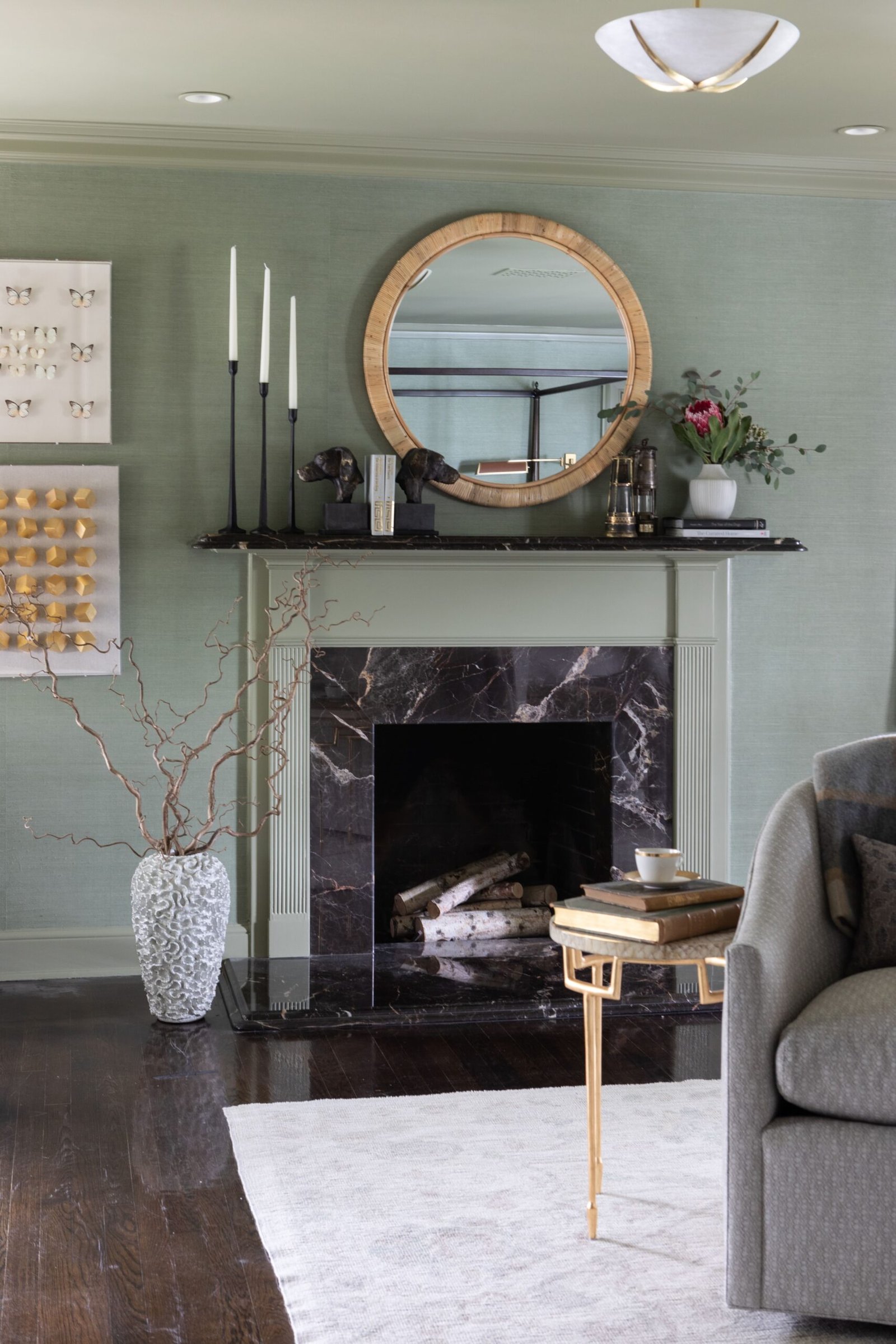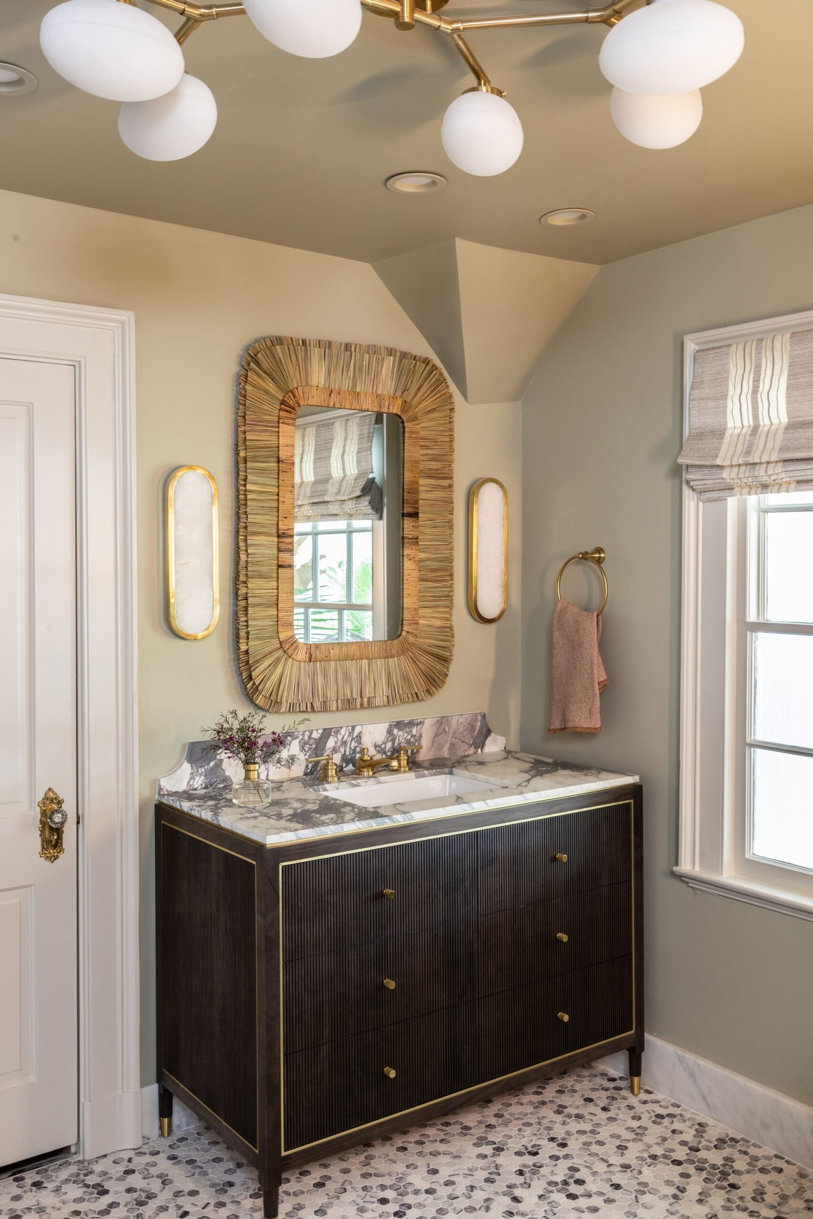 Inspired by a honeymoon trip to South Africa’s Kruger game reserve, this Primary Suite was conceived as a private escape just beyond the rhythm of family life. Layered materials, playful detail, and new-traditional elegance create a retreat that feels transportive, indulgent, and, most importantly, livable.